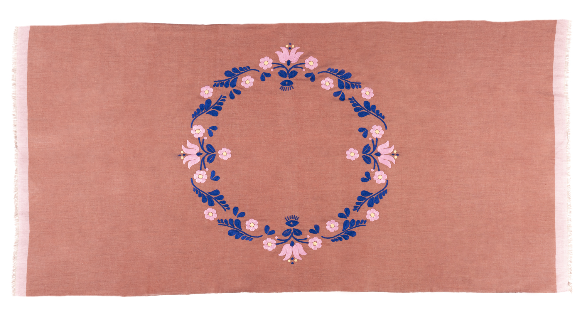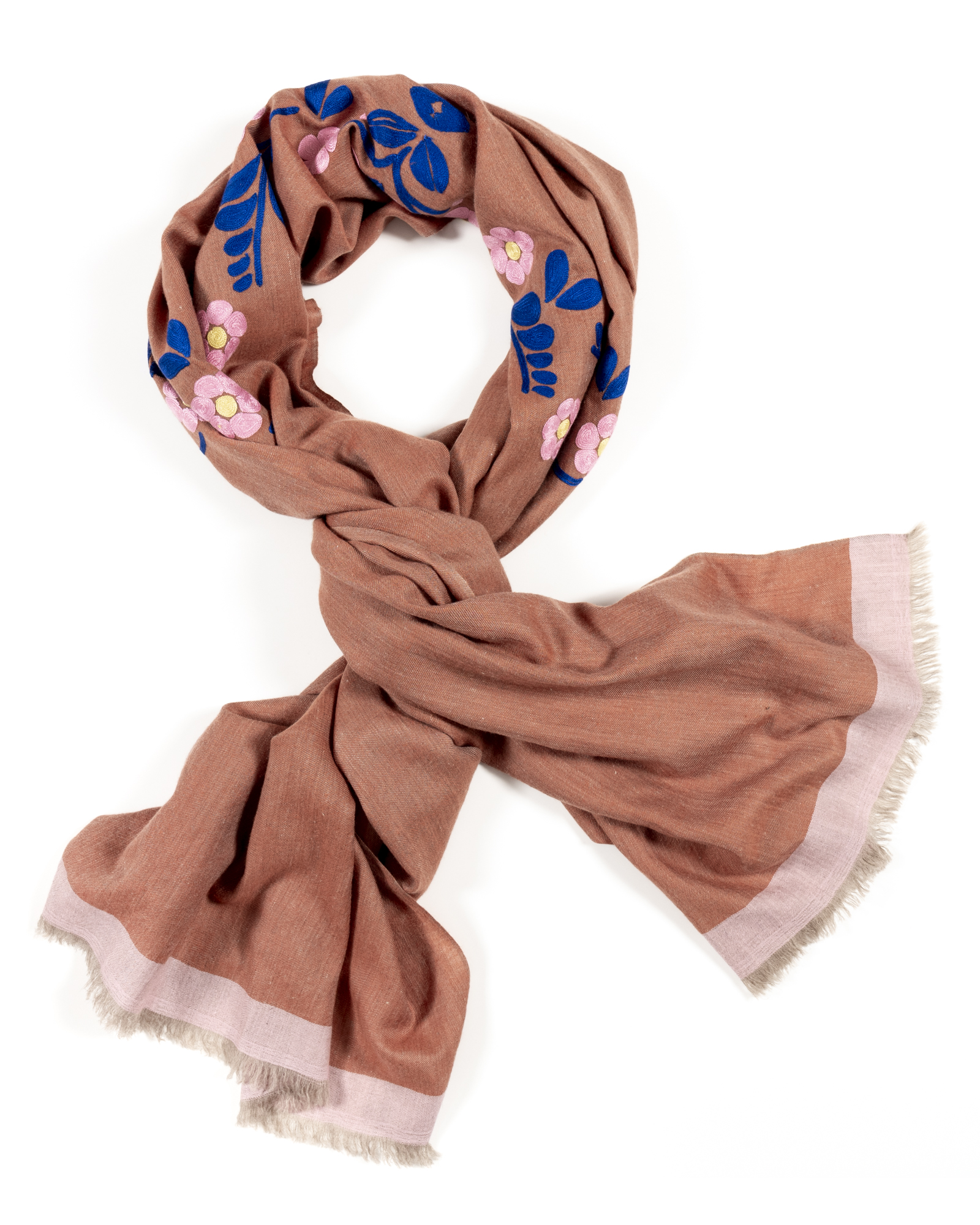 100% Handspun handwoven Cashmere scarve, embroidered with ancient flowers